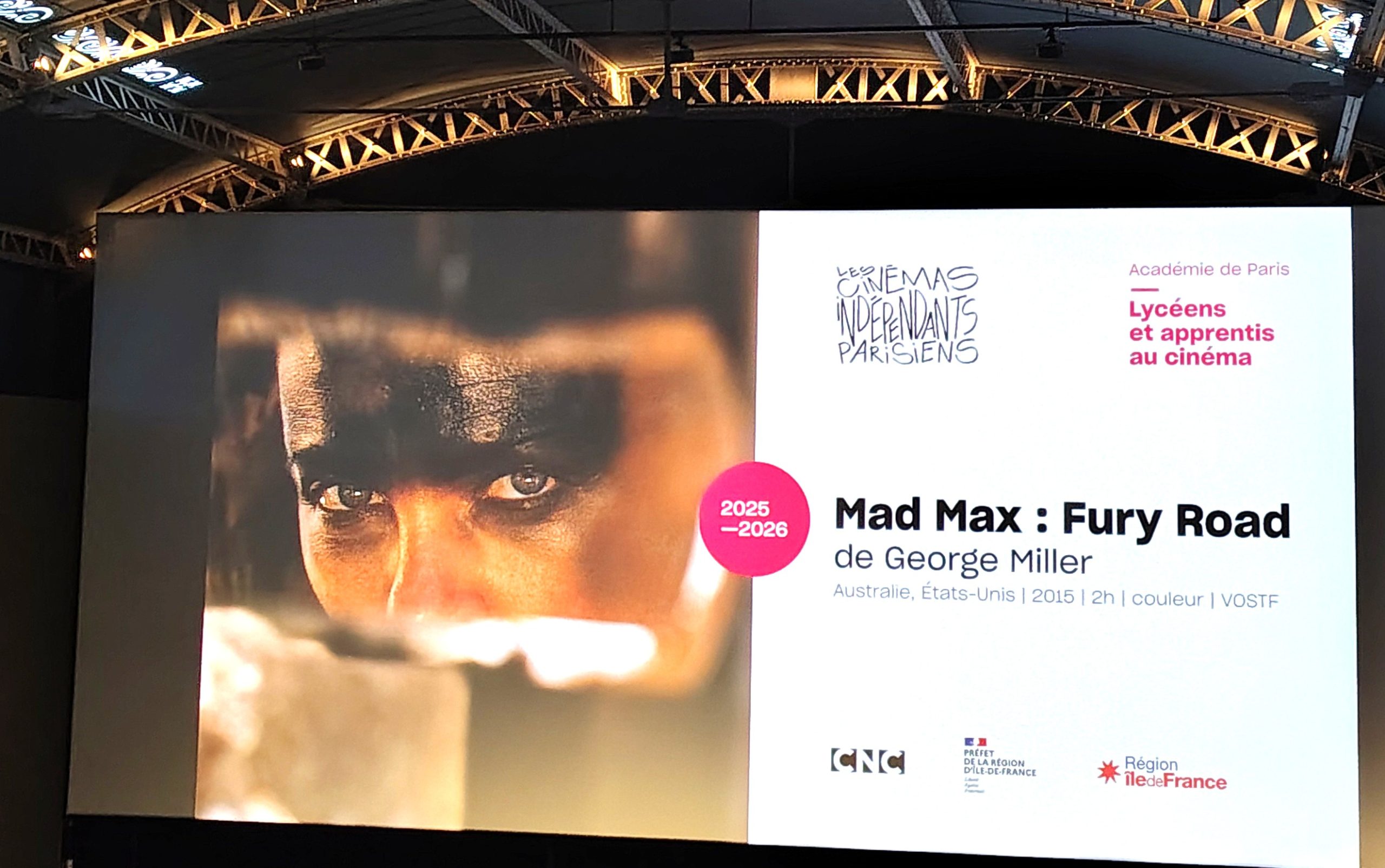 Dans le cadre du dispositif Lycéens au cinéma, les étudiants du BTS CI se sont rendus au Cinéma des Cinéastes pour découvrir deux œuvres marquantes et contrastées : 90s de Jonah Hill et Mad Max: Fury Road de George Miller.
